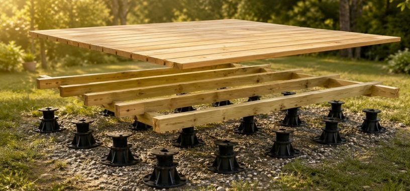 Calculer une terrasse, c’est cinq inconnues qui s’enchaînent et qui se contraignent les unes les autres. Chaque variable change le quantitatif de la suivante. Une erreur sur les lambourdes ruine le compte des lames. Une erreur sur la hauteur de plots oblige à racheter de la visserie. Bref, ça ne pardonne pas.