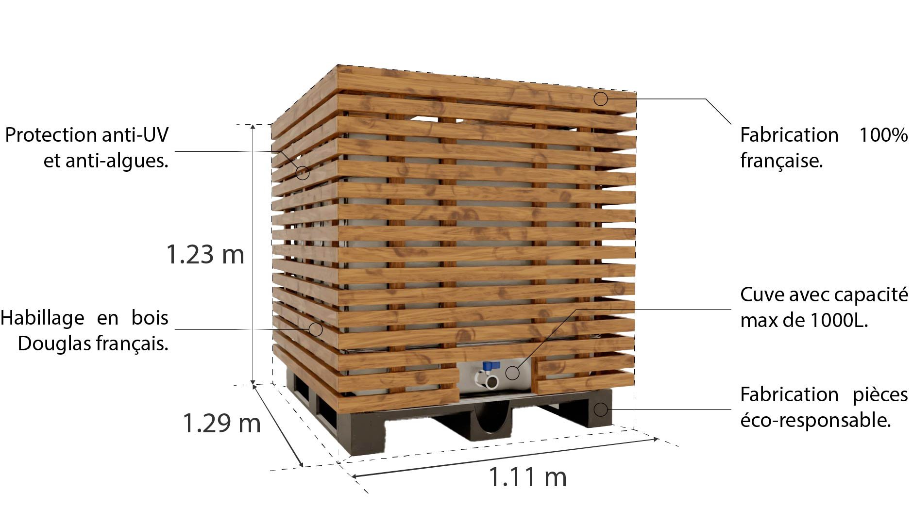 Le meilleur récupérateur d’eau est celui qui allie efficacité, durabilité et esthétique. Aujourd’hui, les cuves IBC de 1000 L habillées de bois sont considérées comme le choix idéal car elles offrent :